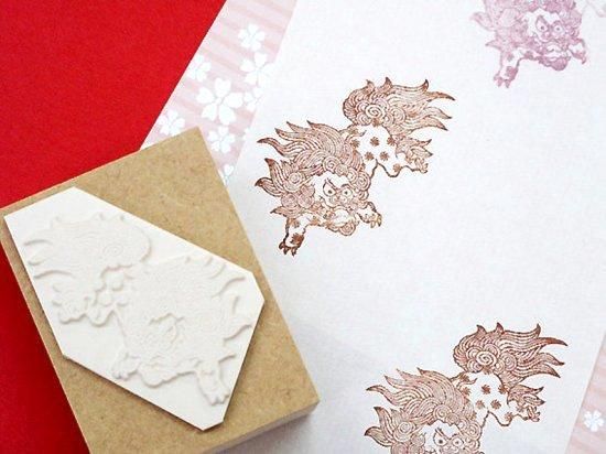 唐獅子(からじし)・狛犬(こまいぬ)のはんこ【和柄スタンプ】 年賀状スタンプ 屏風図 蒔絵 御朱印帳にも【和風ゴム印】